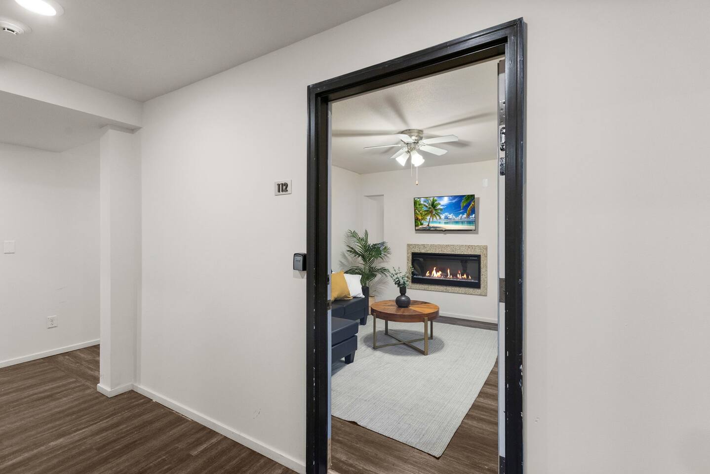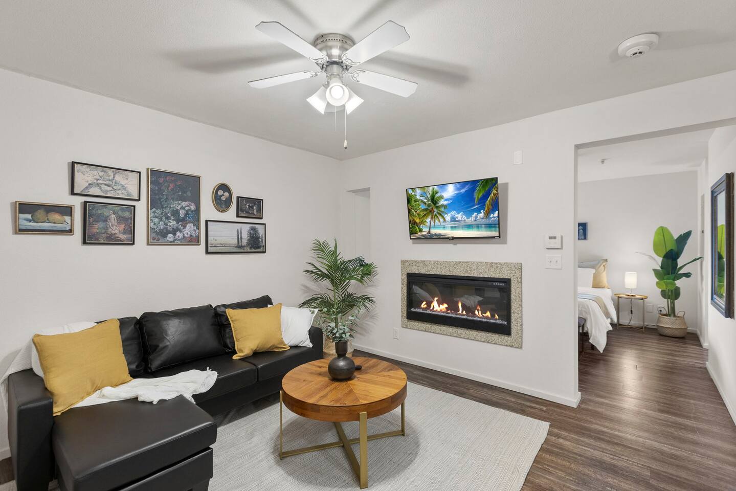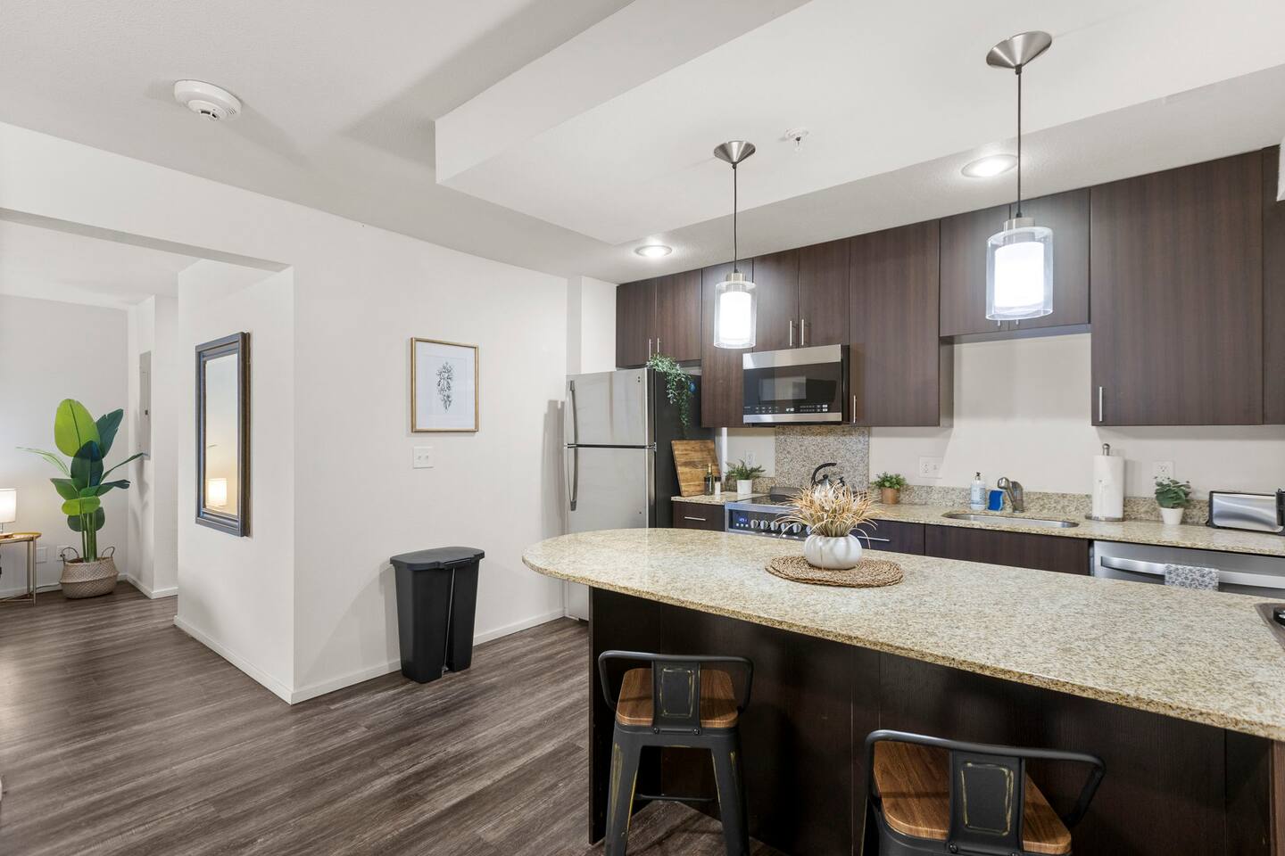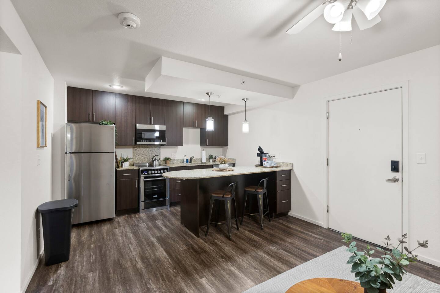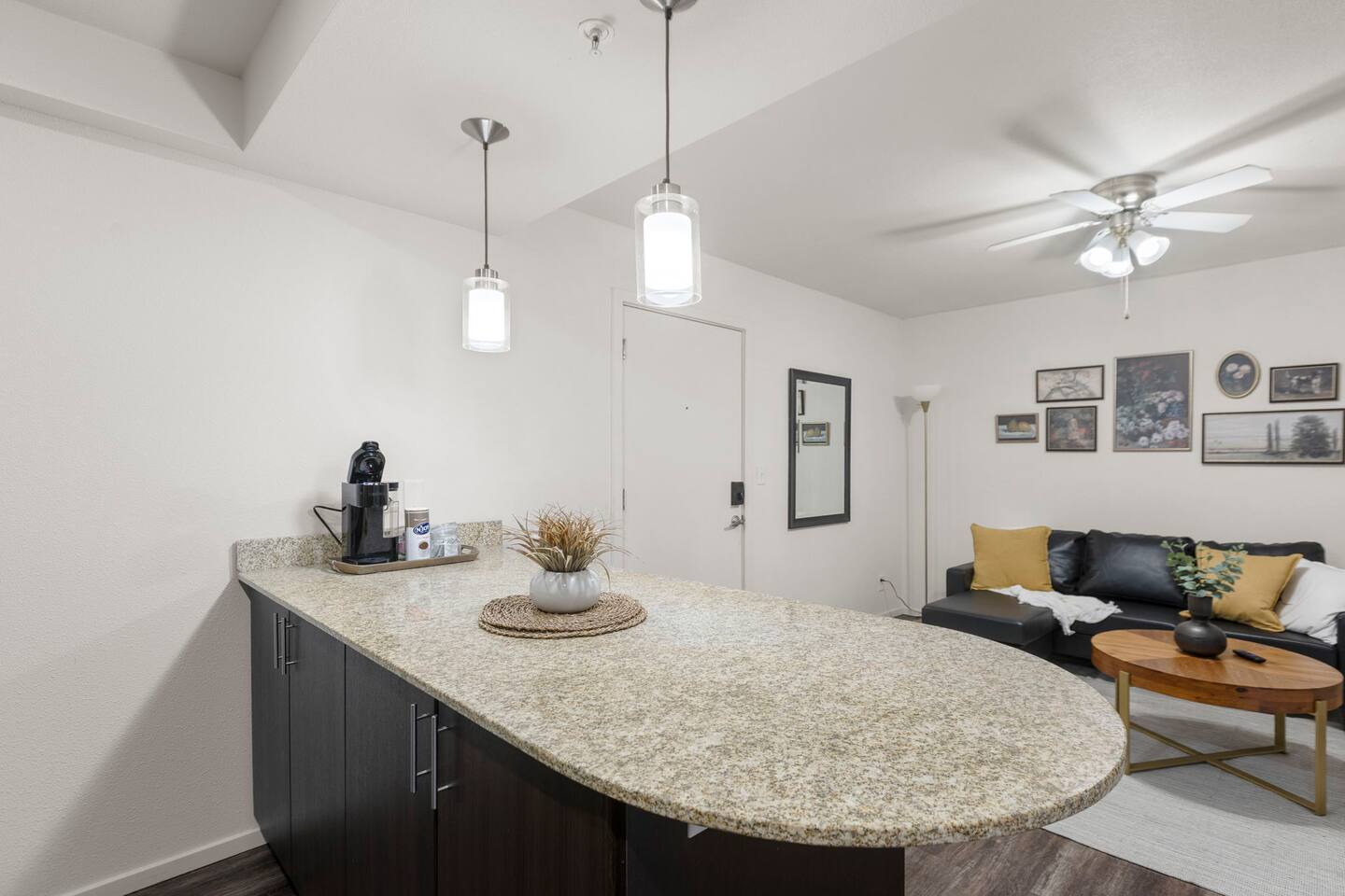 Welcome to this bright and stylish corner unit, offering a modern open-concept layout where the bedroom flows seamlessly into the main living space—perfect for a relaxed, airy vibe. Enjoy private off-street parking, a 55" 4K Roku TV, high-speed Wi-Fi, and a laptop-ready workstation. Stay fit in the on-site gym and relax in comfort with easy access to everything you need. Perfect stay for business or leisure travelers seeking comfort, convenience, and value. Book your stay now!