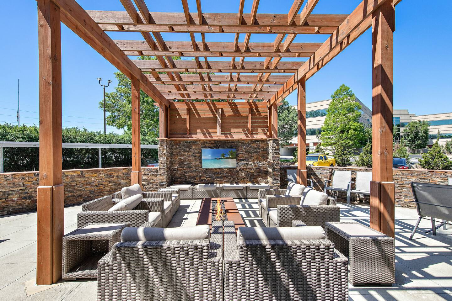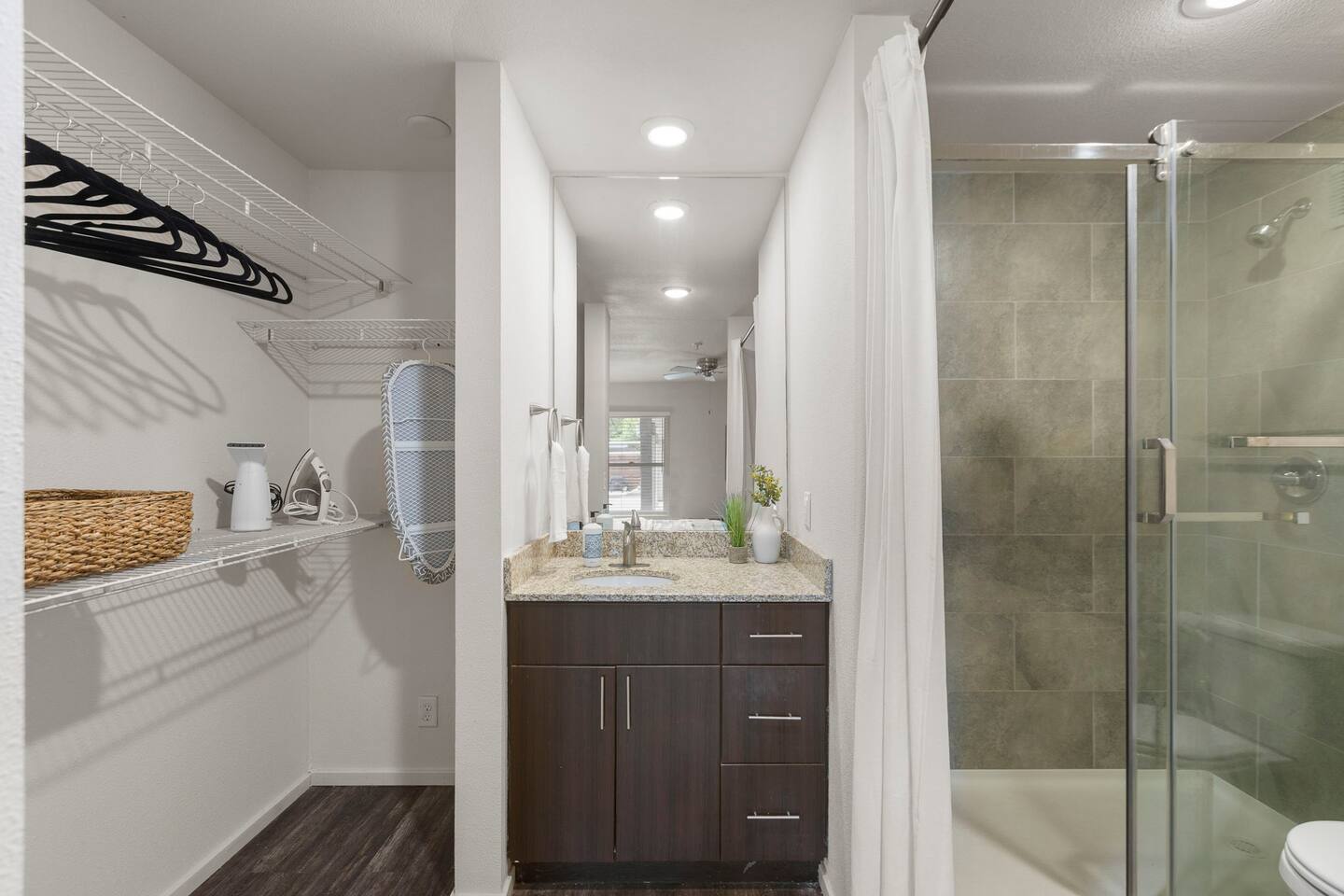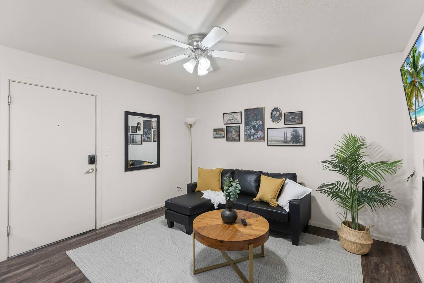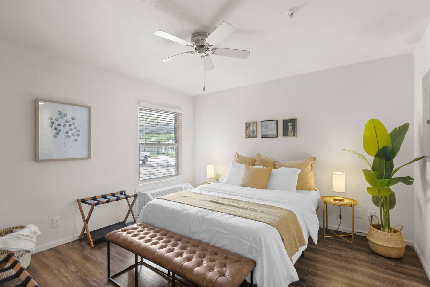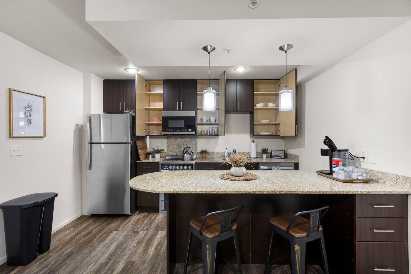 Welcome to this bright and stylish corner unit, offering a modern open-concept layout where the bedroom flows seamlessly into the main living space—perfect for a relaxed, airy vibe. Enjoy private off-street parking, a 55" 4K Roku TV, high-speed Wi-Fi, and a laptop-ready workstation. Stay fit in the on-site gym and relax in comfort with easy access to everything you need. Perfect stay for business or leisure travelers seeking comfort, convenience, and value. Book your stay now!