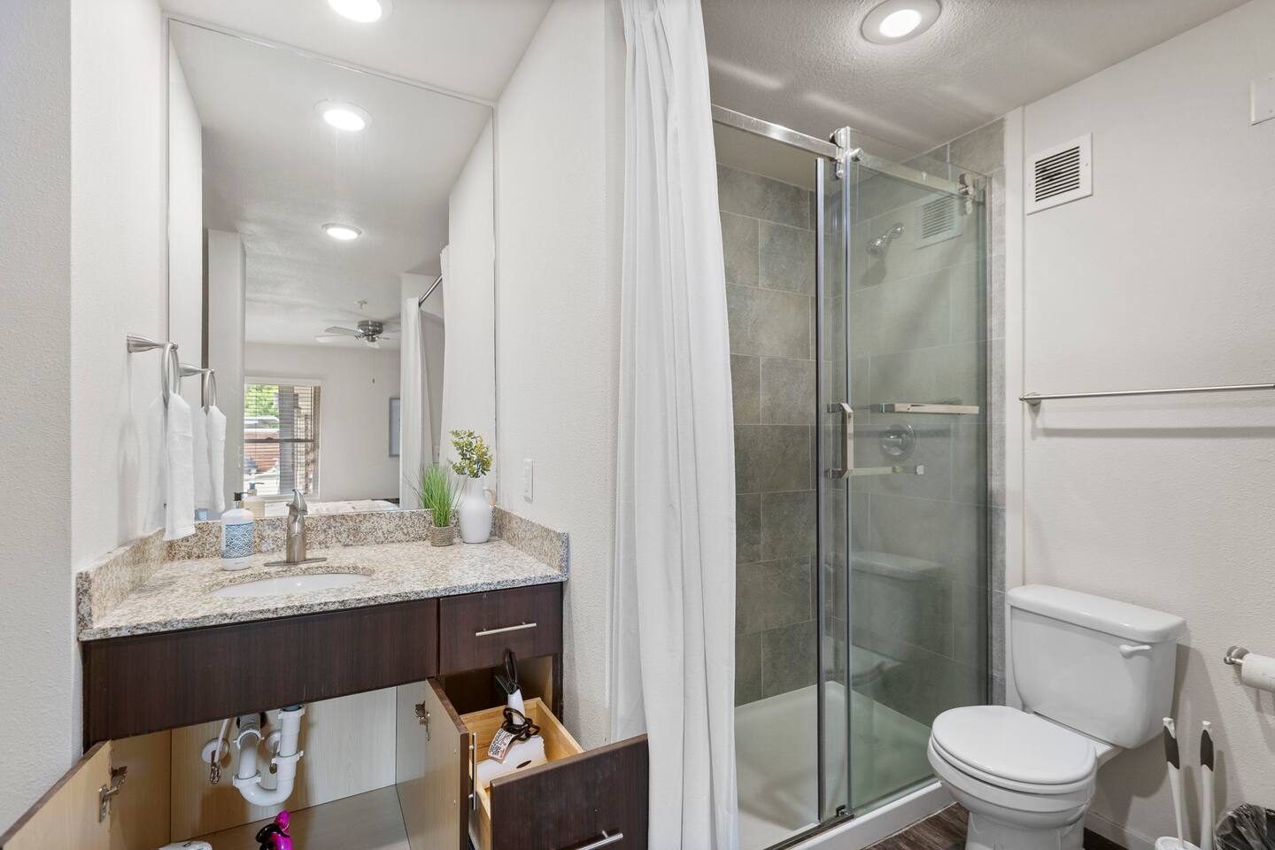 ✪The entire one bedroom apartment is yours to enjoy for the duration of your stay. Only you and your traveling companion(s) will have access to the space (unless you request any maintenance or extra cleans from our service team) EXCEPTION: Building Office Access: Please note that the building office reserves the right to enter the premises during your stay for scheduled maintenance or in case of emergency situations beyond the host's control. We appreciate your understanding and cooperation in such circumstances. ✪Self Check-in with the smart lock system. You will be messaged with your unique code at the time of check-in.