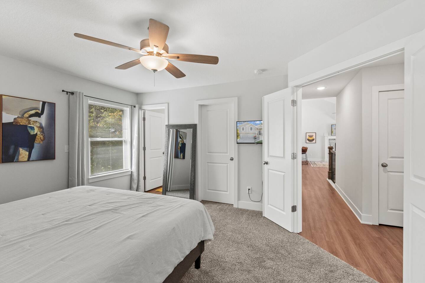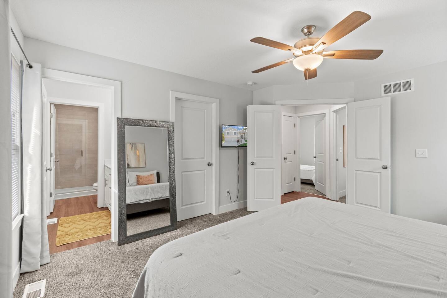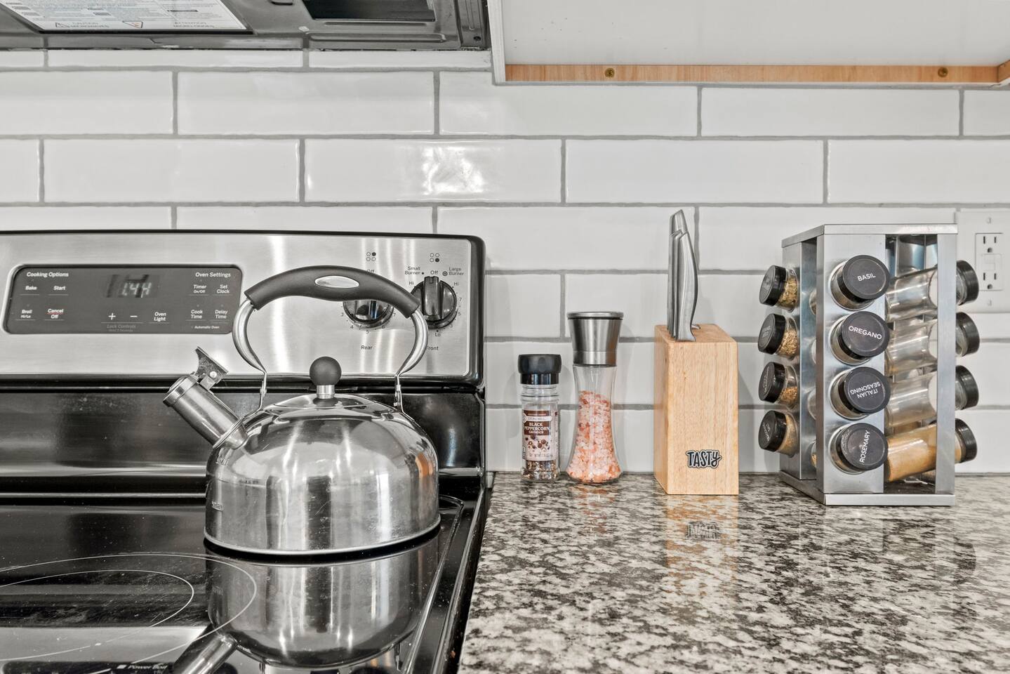 Welcome to your Modern Creekside Haven, a stylish 2-story split-level retreat designed for comfort and connection. ✨ 4 bedrooms, 2 bathrooms – sleeps up to 10 guests 🛏️ Basement: 1 Queen Bed + 1 Queen Sofa Bed 🛏️ Main Level: 1 King Bed + 2 Queen Beds + 1 Queen Sofa Bed 🔥 Decorative fireplace (non-operational) 🍳 Fully equipped kitchen with stainless steel appliances ☕ Coffee bar, bar seating, and spacious dining area 🌳 Elevated deck with wooded views and a quiet creek below 🚗 2-car garage + private driveway + free street parking (up to 4 vehicles total)