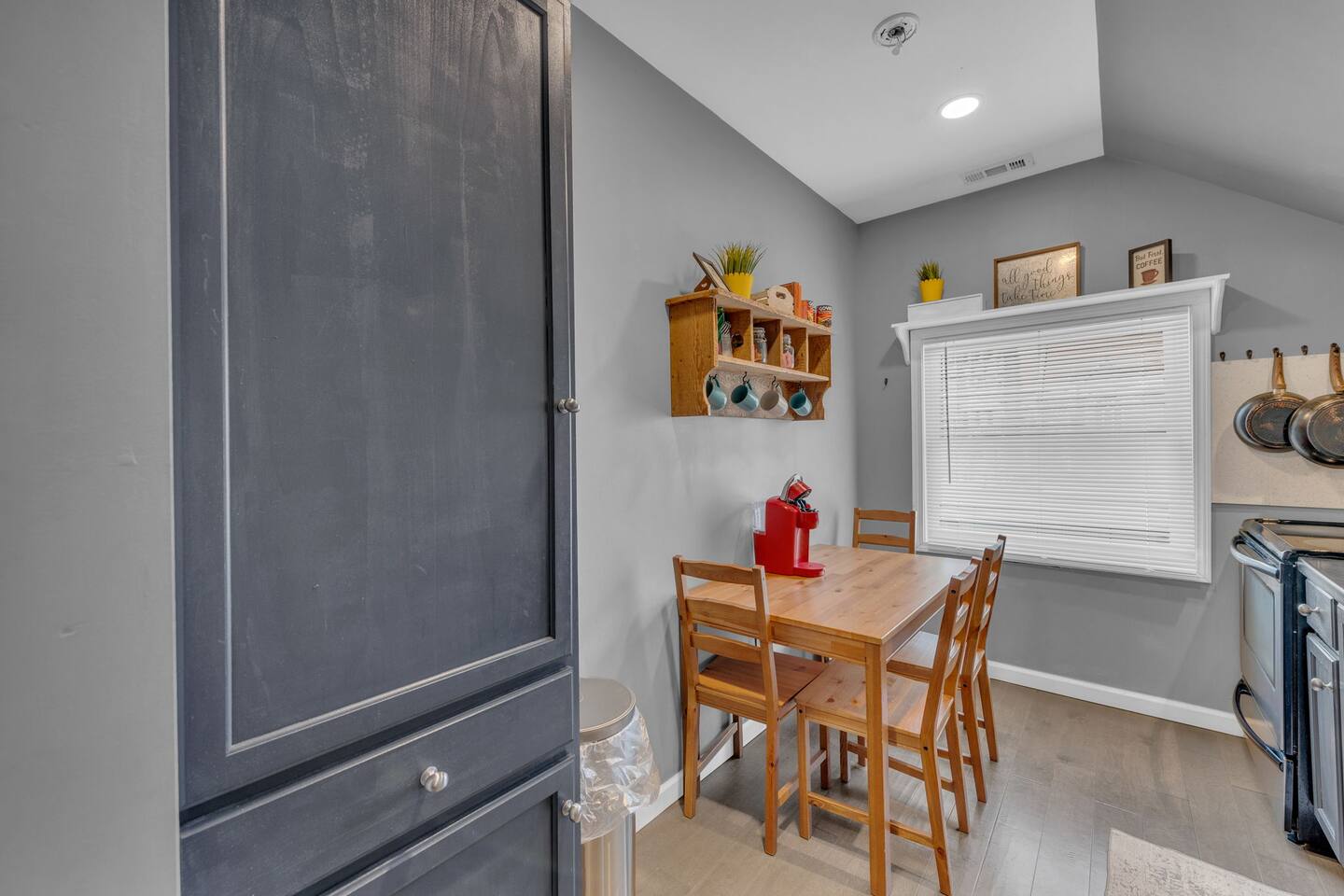 Discover timeless elegance in this meticulously renovated 119-year-old property. The separate apartment offers cozy accommodation for 2, extendable to 4 with a king bed and an air mattress. Enjoy the convenience of private parking for up to 2 cars, with a designated spot for guests. Access your retreat via a discreet stairway at the back. Delight in culinary adventures with a fully stocked kitchen, complete with a Keurig, teas, filtered water, and all the essentials for a memorable stay.