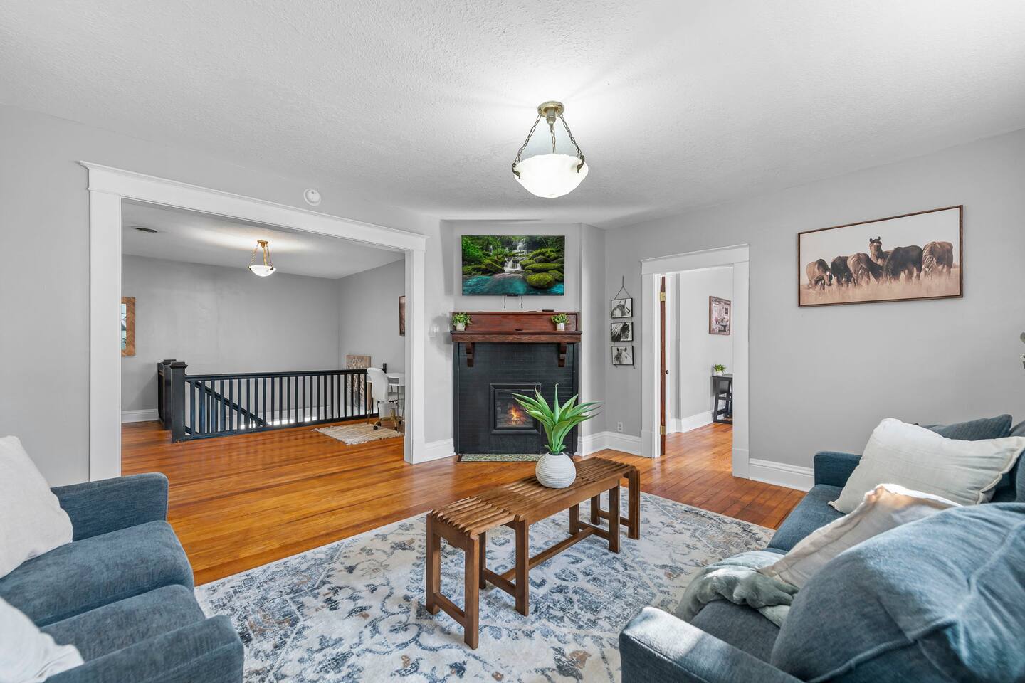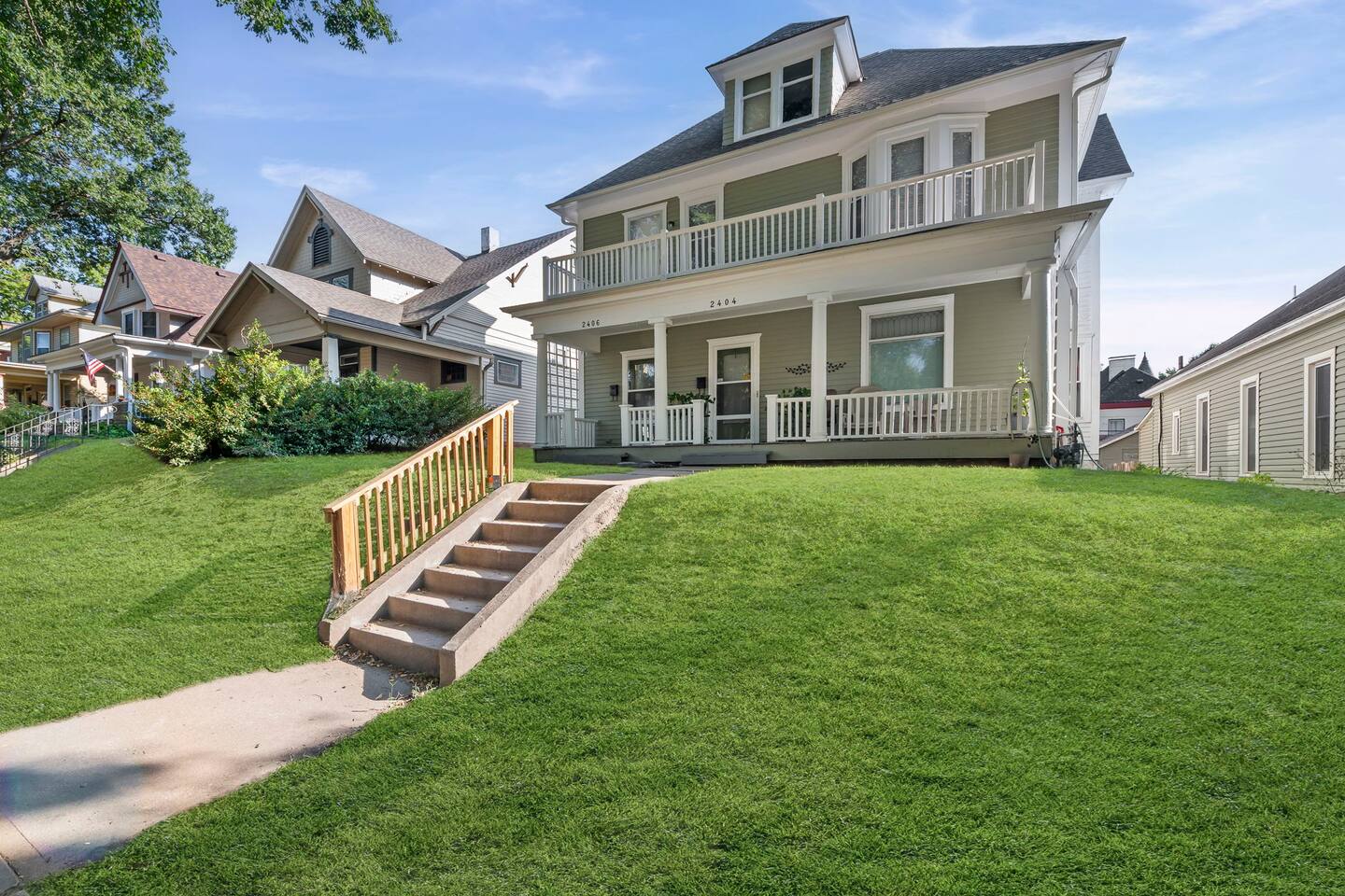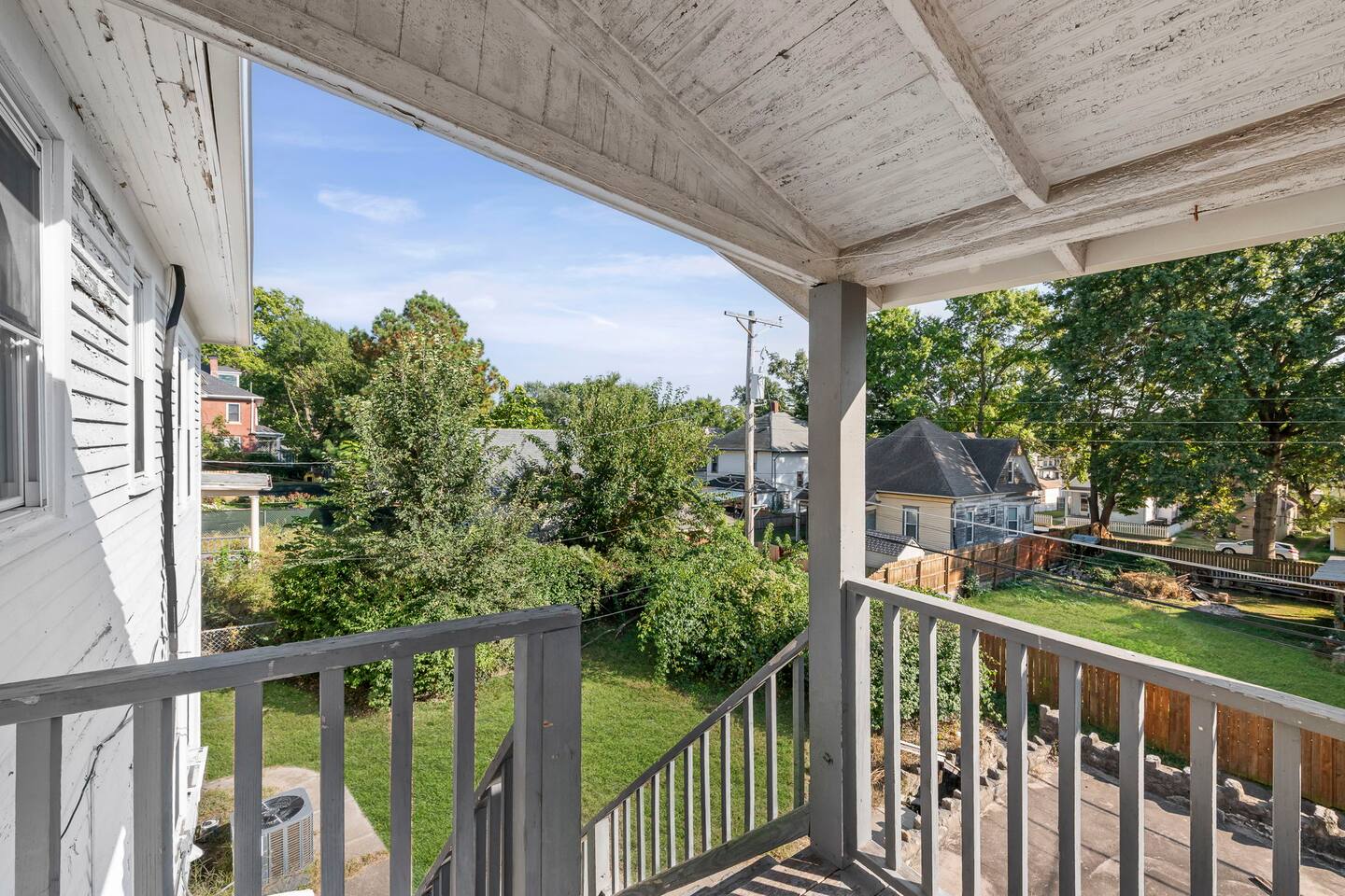 โจ Second-floor 3-BR apartment in a classic historic home ๐๏ธ Three comfy queen beds (sleeps up to 6 guests) ๐บ Smart TV in the living room + cozy fireplace ambiance ๐ป High-speed WiFi + dedicated work desk for remote work ๐ณ Fully equipped kitchen with essentials for longer stays ๐ณ Shared backyard + relaxing front porch seating ๐ Street parking only, easy access to downtown St. Joseph ๐ Perfect for families, professionals, or group getaways