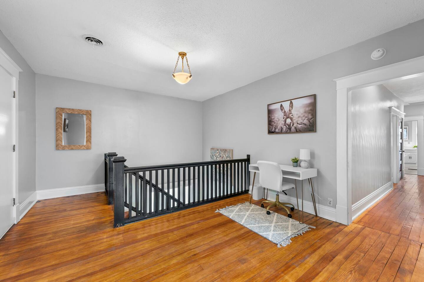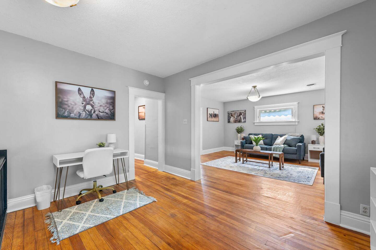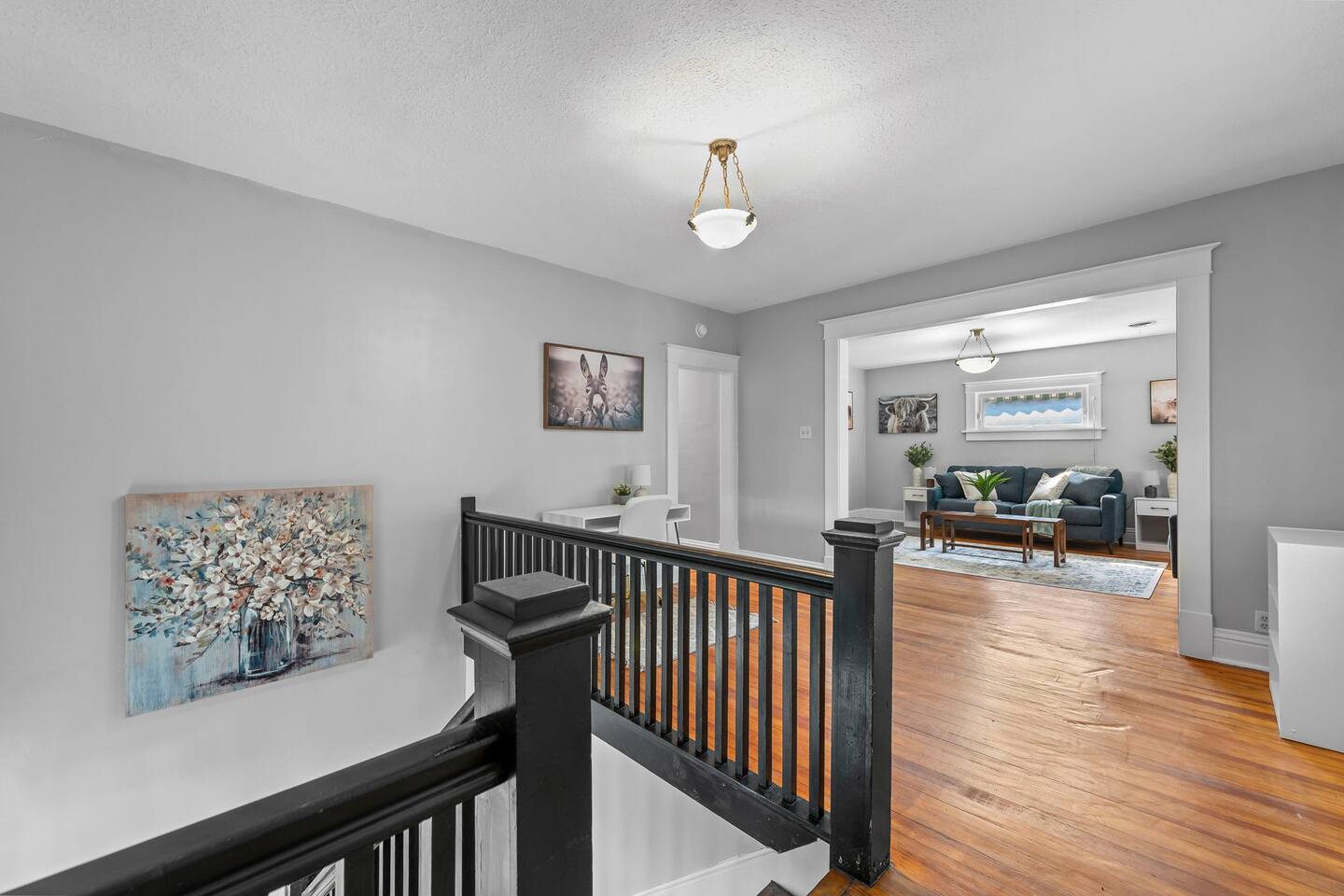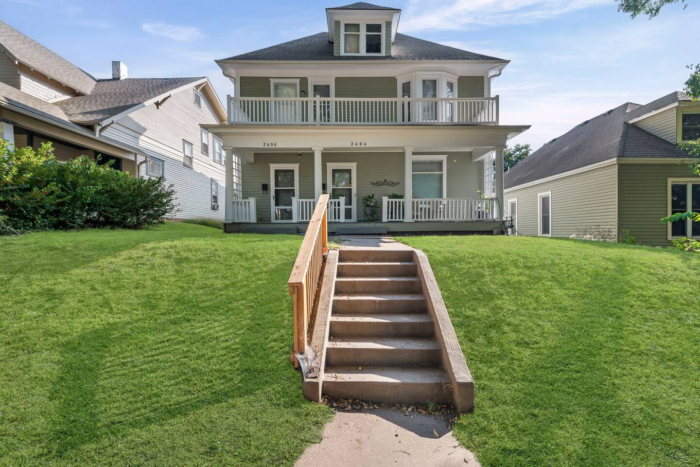โจ Second-floor 3-BR apartment in a classic historic home ๐๏ธ Three comfy queen beds (sleeps up to 6 guests) ๐บ Smart TV in the living room + cozy fireplace ambiance ๐ป High-speed WiFi + dedicated work desk for remote work ๐ณ Fully equipped kitchen with essentials for longer stays ๐ณ Shared backyard + relaxing front porch seating ๐ Street parking only, easy access to downtown St. Joseph ๐ Perfect for families, professionals, or group getaways