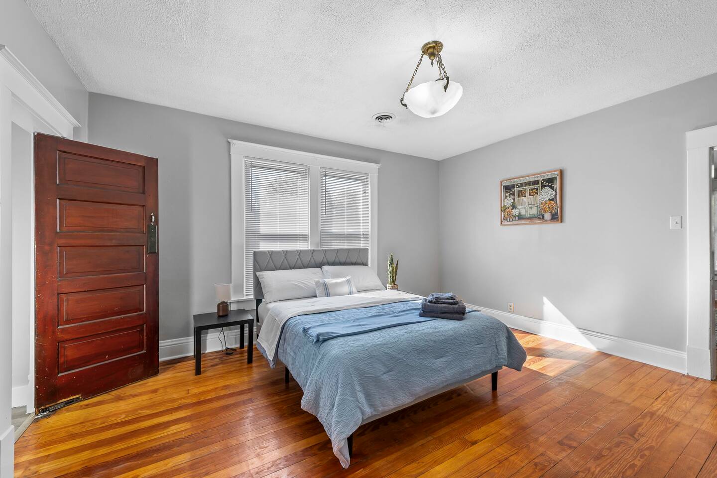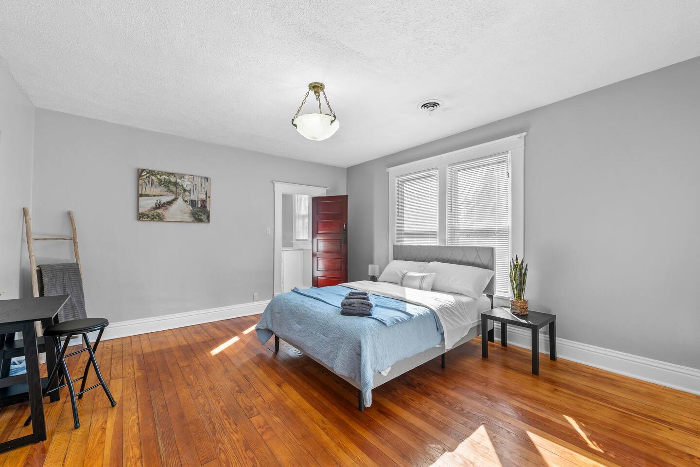 Welcome to The Maple Attic, a bright and spacious 3BR retreat on the second floor of a charming historic home in Saint Joseph. Each bedroom features a comfy queen bed, perfect for families, students, or traveling professionals. Enjoy a cozy living area with smart TV, a fully equipped kitchen, and fast WiFi for work or streaming. Relax in the shared backyard or take a short drive to downtown shops, parks, and restaurants. Your peaceful getaway awaits at The Maple Attic! Book your stay now!